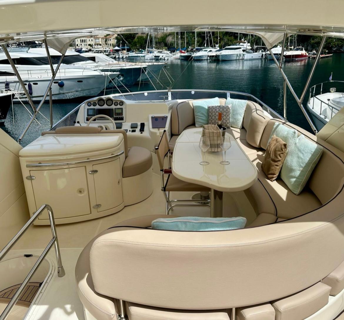 L’Azimut 50 Fly séduit par son flybridge généreux offrant un espace de détente luxueux avec une vue panoramique imprenable, ses volumes intérieurs spacieux qui garantissent un confort absolu, et ses deux membres d’équipage attentifs qui assurent une expérience haut de gamme en mer.